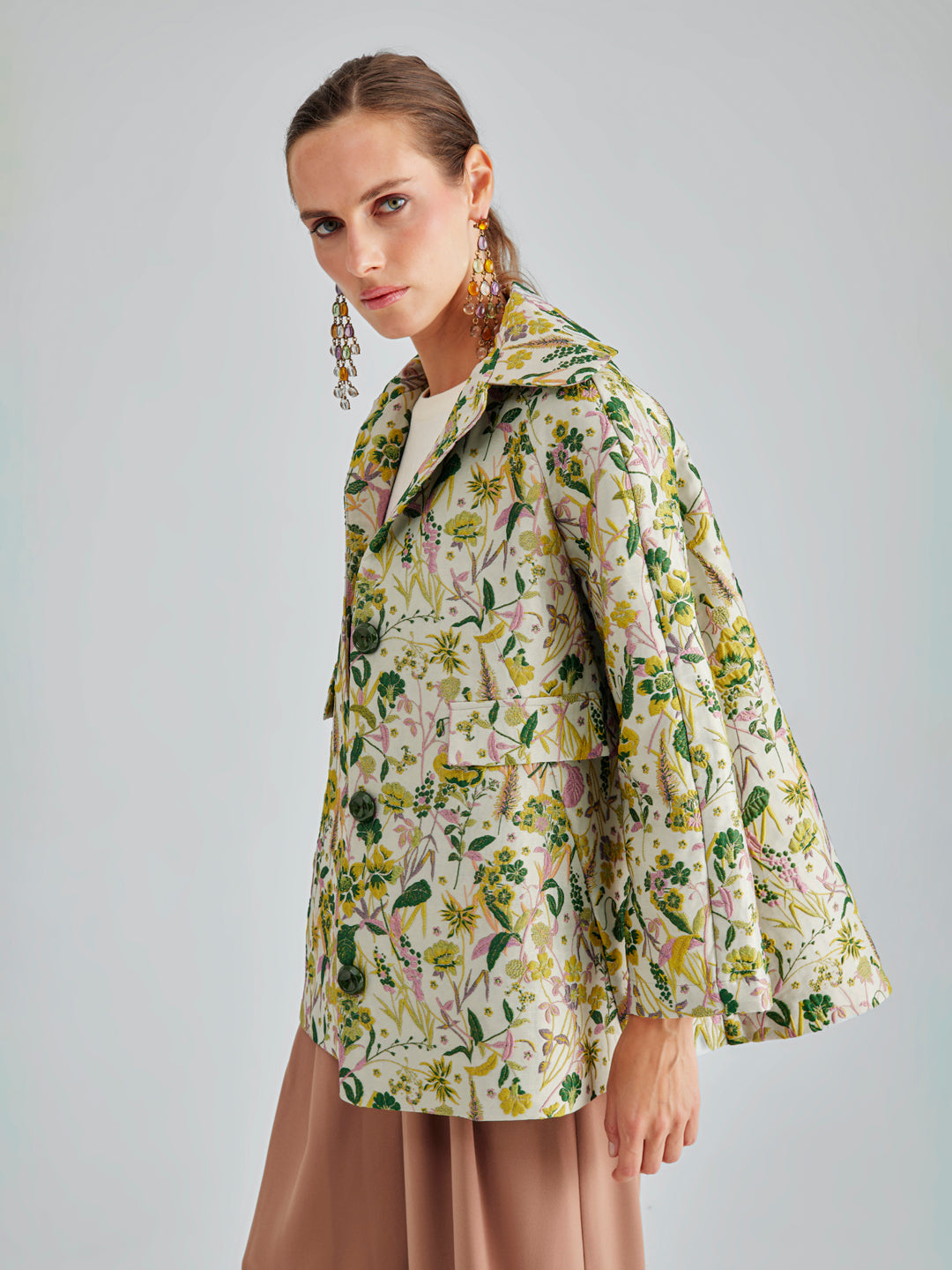 • Relaxed A-line jacket silhouette